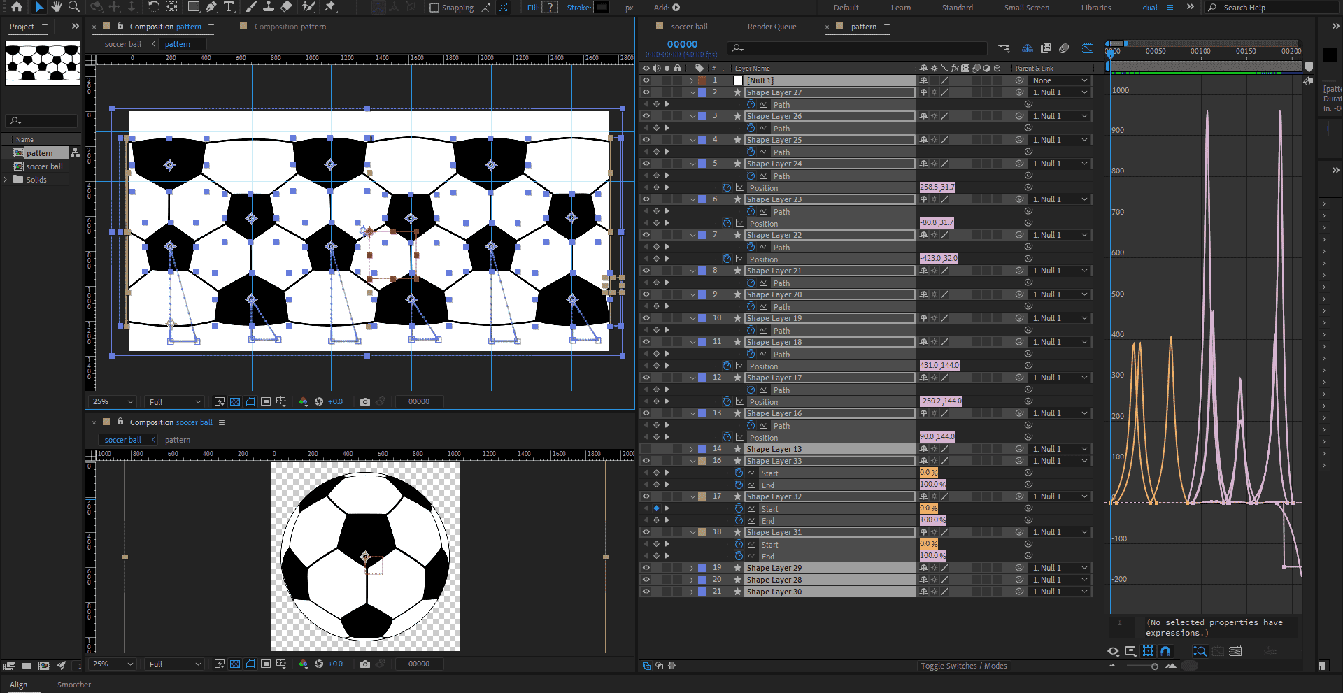 For this Soccer Ball Animated Gif I made the football pattern using after-effects shape layers first.